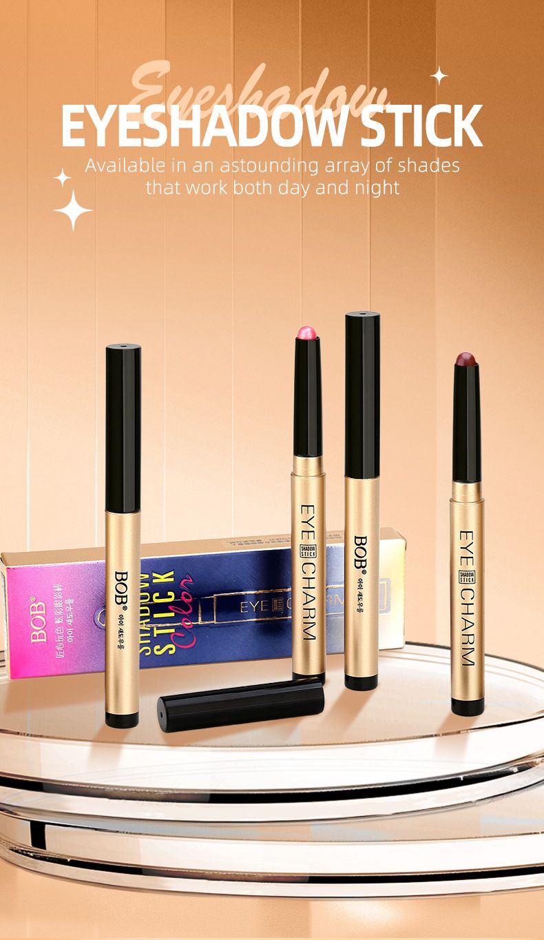 Bob eyeshadow pencil for long-lasting, natural color, brightening with subtle shimmer, easy-to-use highlighter stick that shapes in one swipe, available in 4 colors