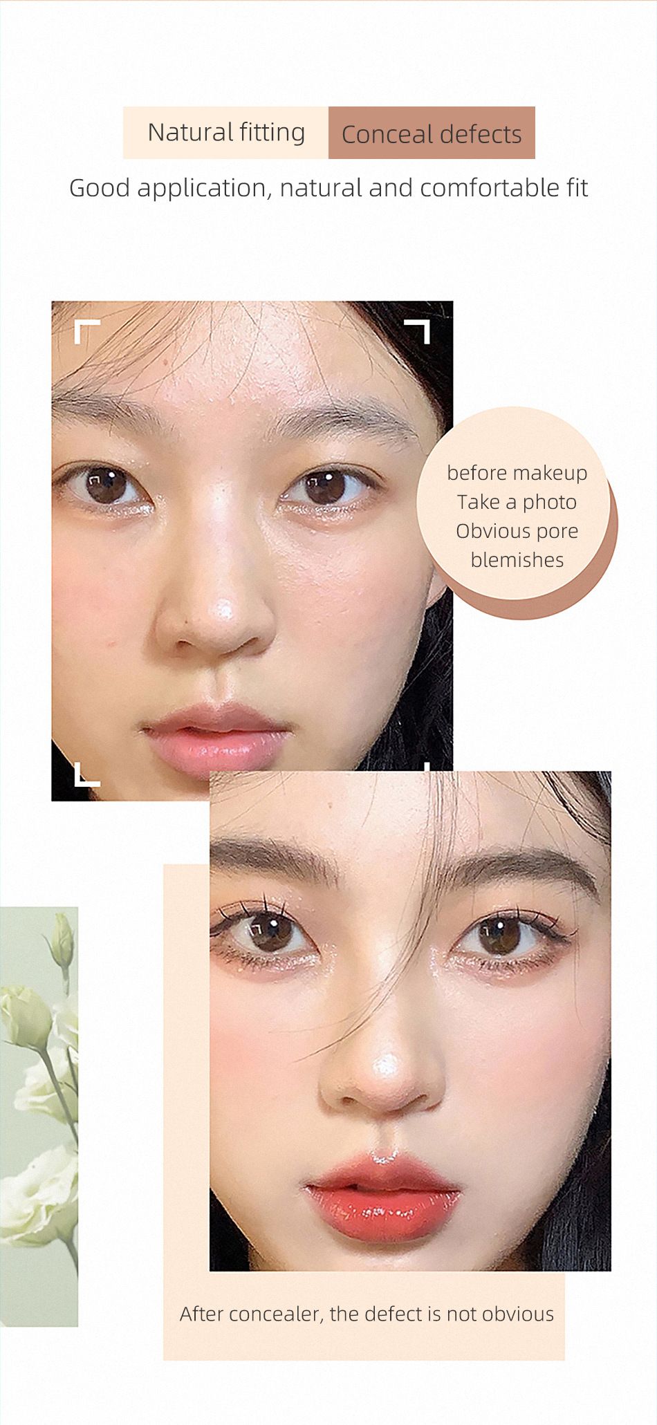 Concealer for blemishes, acne marks, dark circles, and contouring cream, 2-piece set, colors