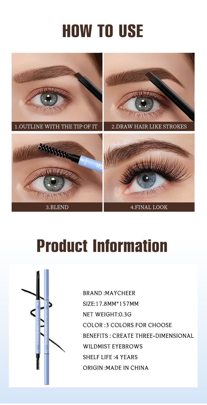 MAYCHEER Double-Ended Eyebrow Pencil, Ultra-Fine, Easy for Beginners to Apply, Smudge-Proof, 2-Color Set