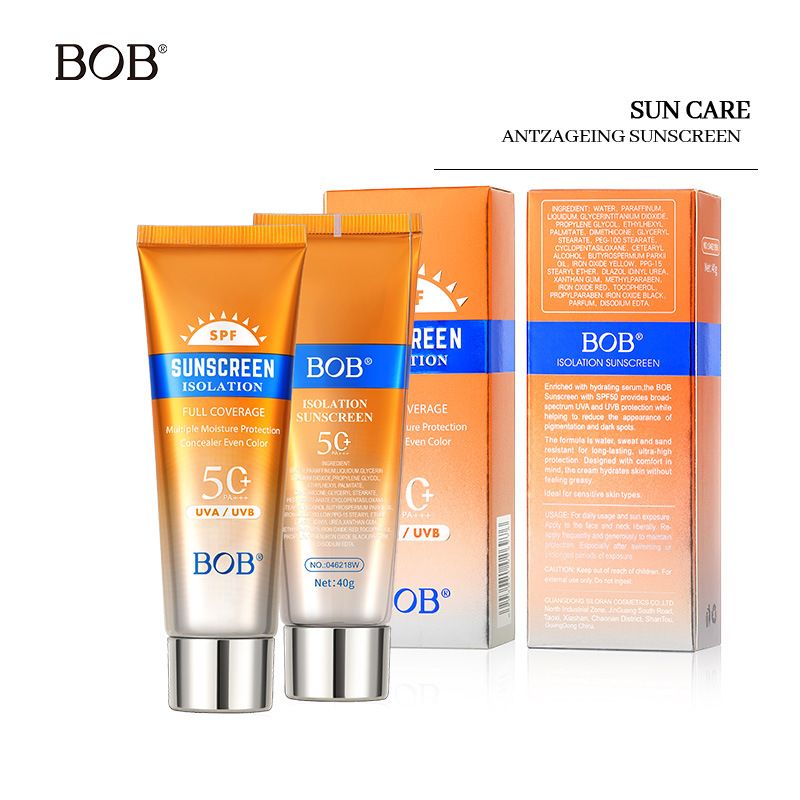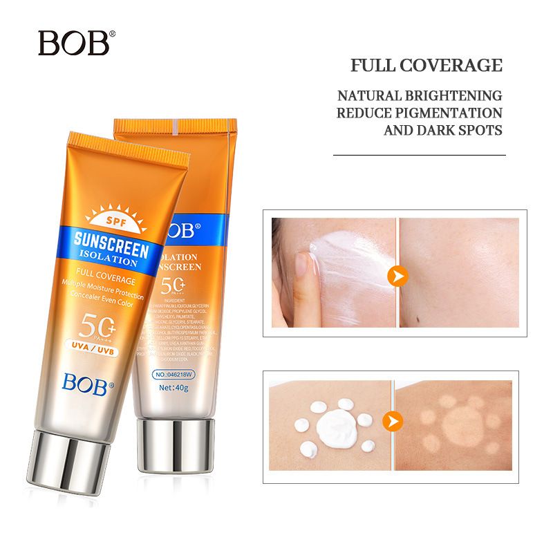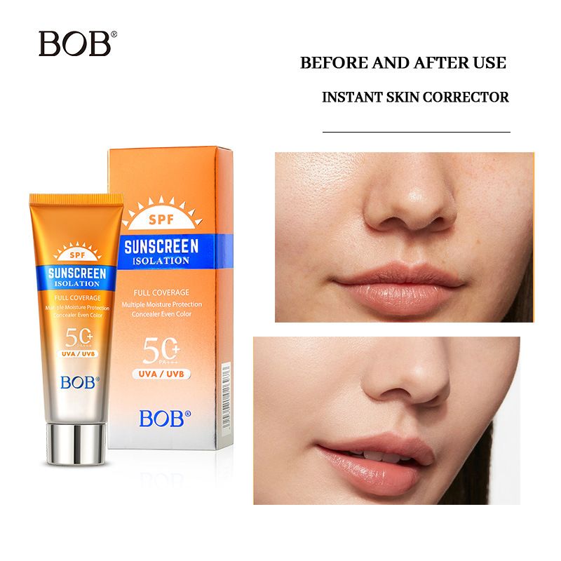 Bob sunscreen with isolation protection, lightweight and moisturizing, non-greasy, face concealer, brightening, softening skincare BB cream, 2 pieces