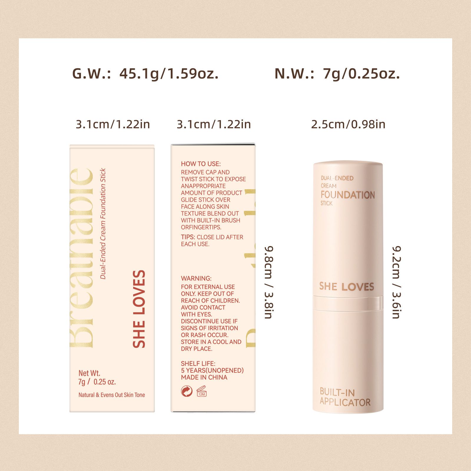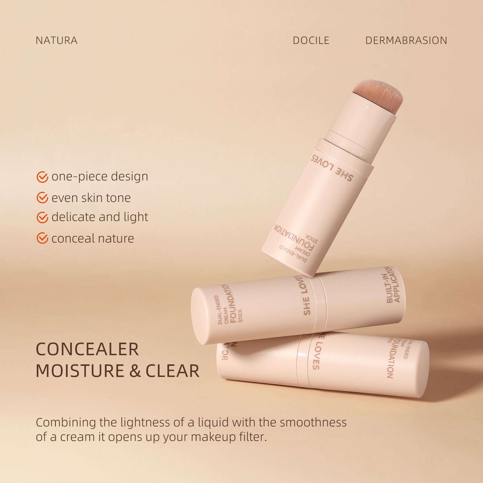 Double-Ended Foundation Stick - Concealer, Oil Control, Long-Lasting, Waterproof, Sweat-Resistant, Non-Smudge, 2 Pieces
