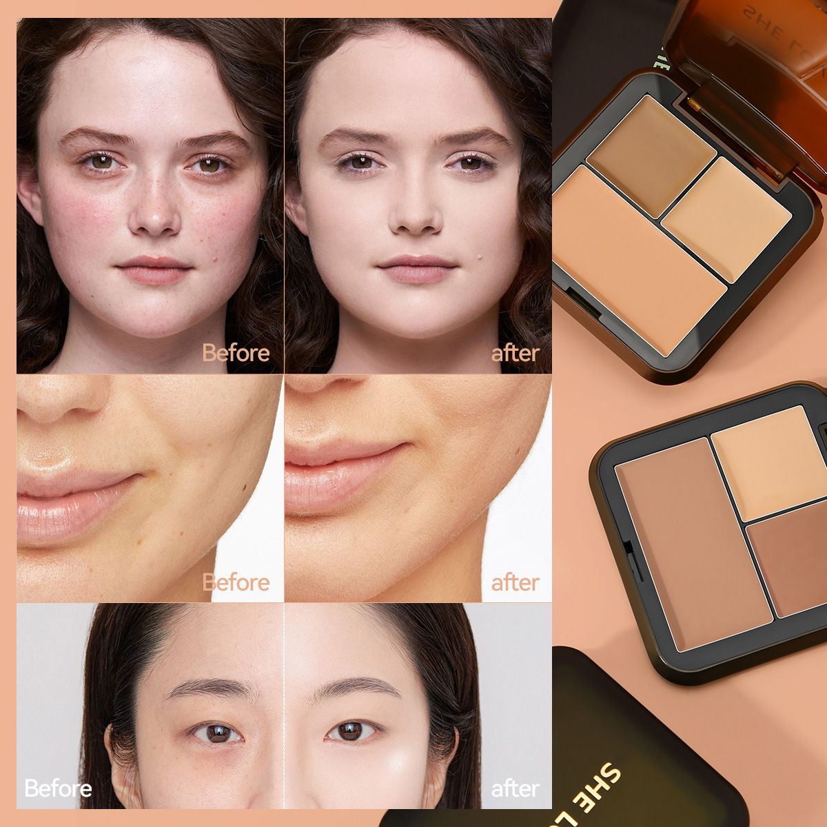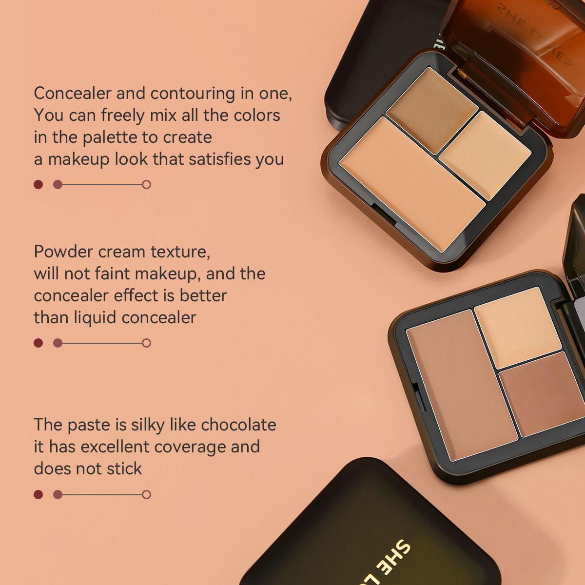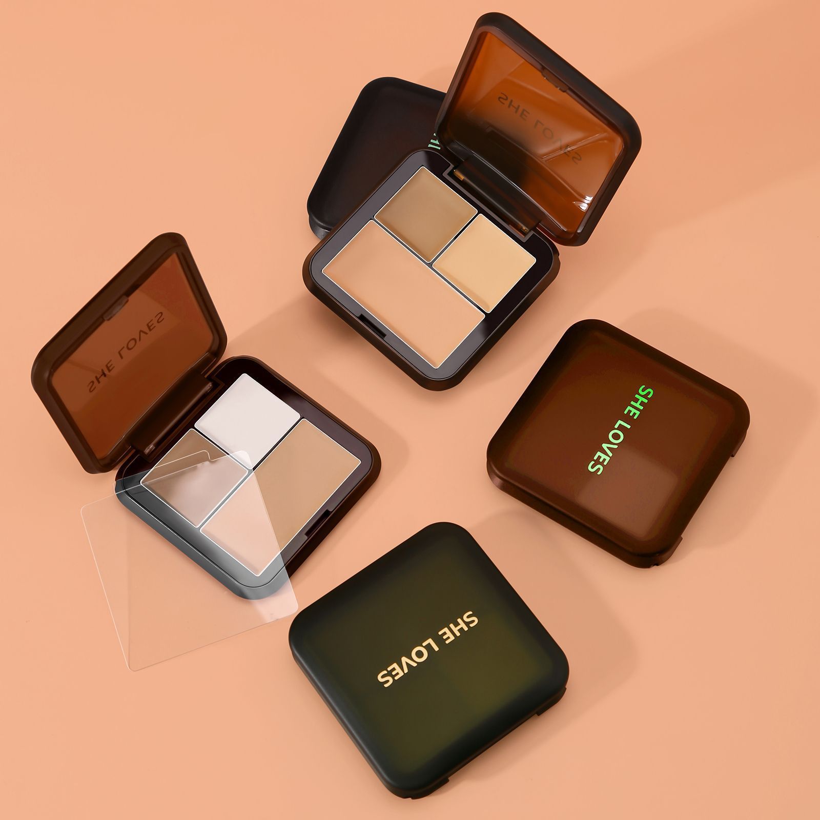 SHELOVES 3-Color Contour Palette Highlight, Shadow, Eyeshadow, Nose Contour, Concealer Cream-to-Powder 3-Piece Contour Palette