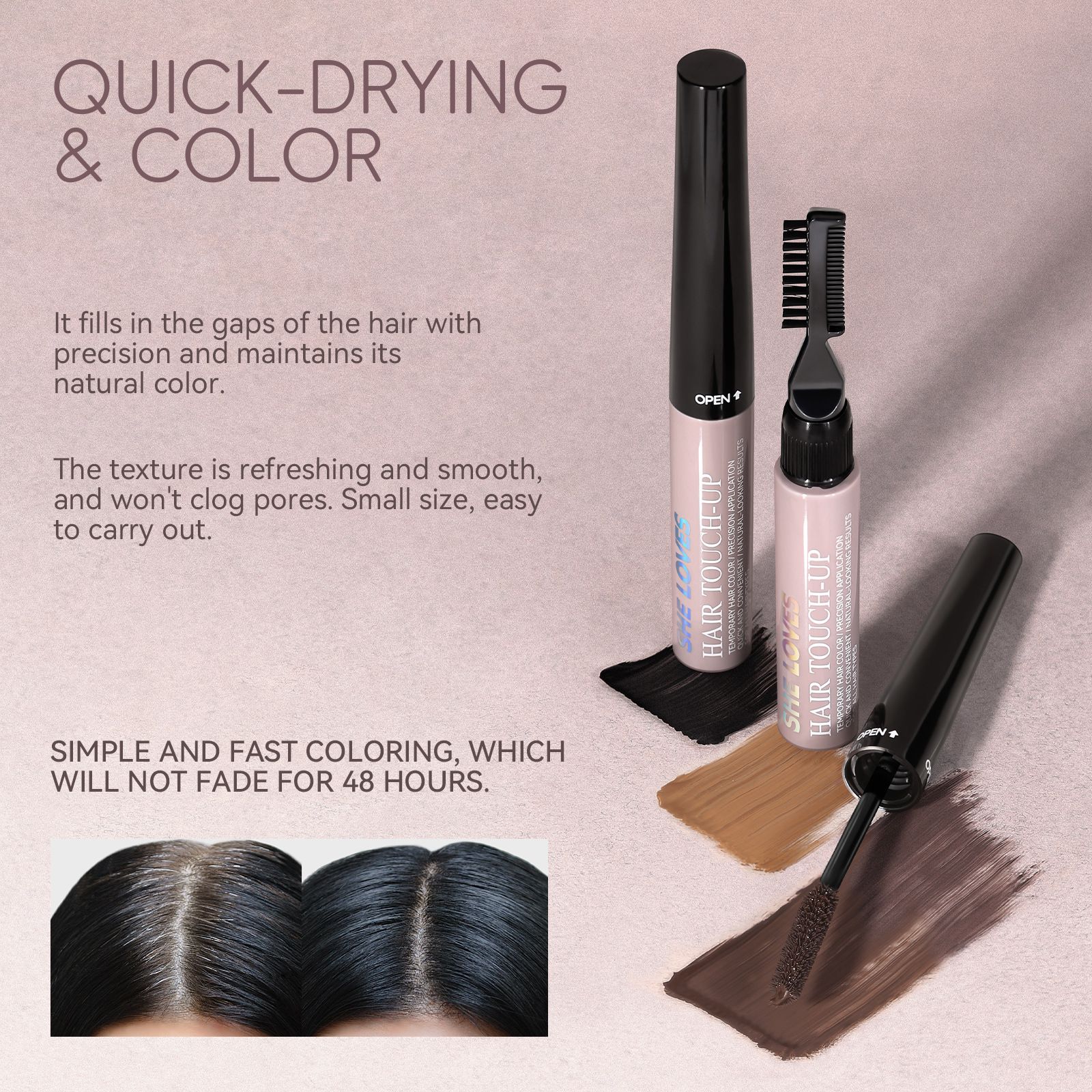 sheloves White Hair Touch-Up Stick for Covering Gray Roots, Non-Staining, Non-Permanent Hair Color, Waterproof, Black Hair Stick, 2 Pieces